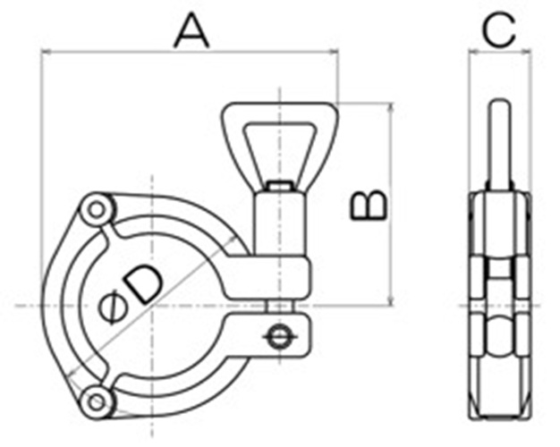 3Kクランプ C3K Clamp Type 3K サイズ Size 1.5S(1.0S)、2.0S 主要流体名 Main Fluid 接続規格 Connection ISO 適用法規等 Applicable Regulation 弁種継手類材質鉄鋼製使用流体水その他の流体主な用途サニタリー バリエーション Variation サイズ Code A B C D 納入図面PDF 取扱説明書 DXFファイル 3Dデータ 1.5S(1.0S) C3KU-15S 87.3 55 16 64 2.0S C3KU-20S 102.0 55 16 75 ※1.0Sは、1.5Sと共用となります。