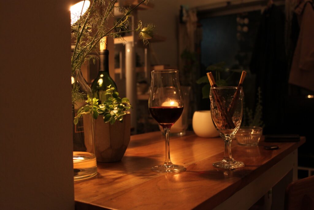 自宅でワインを楽しむ時間は、ただ飲むだけでなく、その場の雰囲気も大切な要素です。少しの工夫で、いつもの空間が非日常の特別な場所に変わります。